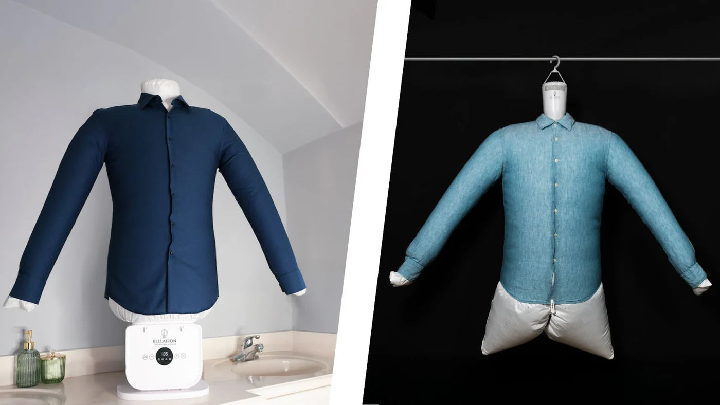 Simply place your shirt or pants on the inflatable form, zip or button it, and press start. Bellairon inflates the garment, removes wrinkles, and dries it evenly. No ironing board, no steam, and no effort required.